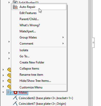 How to Automatically Repair a missing mate reference SOLIDWORKS