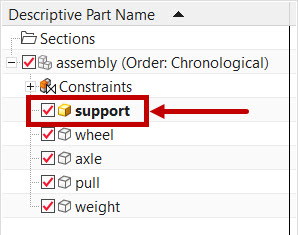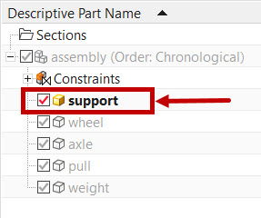Hide all the parts except “support” part and double click on “support” part to activate or work in part as shown.