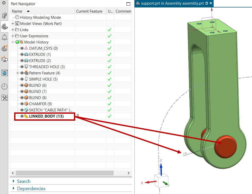 In the Target Part select “support” part from assembly navigator tree or from Loaded parts as shown,