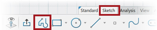 Note: – To automatically select Tangent Arc, click and drag the cursor away from the created line, and release. When a geometric constraint symbol appears in the Graphics window, hold CTRL to lock that constraint.
